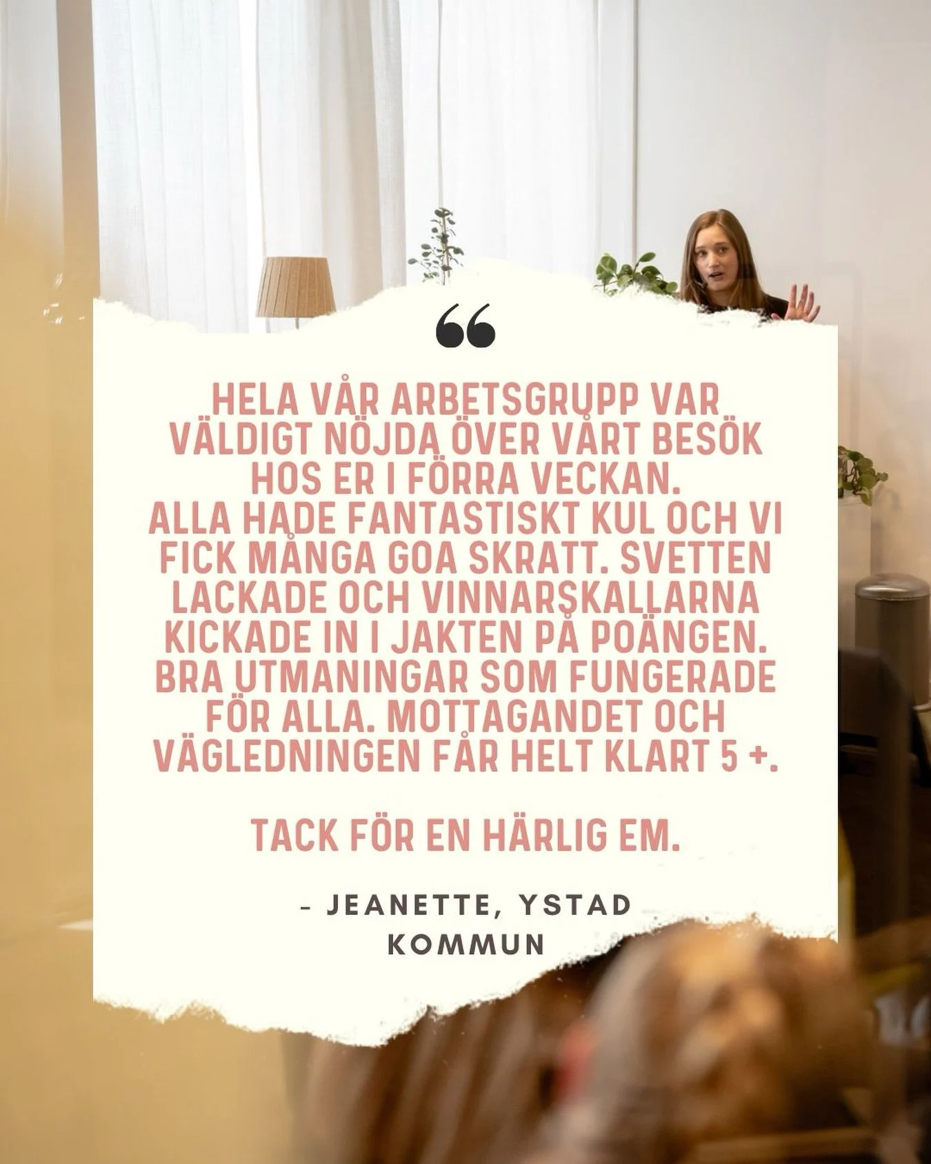 När aktiviteten är över samlas hela gruppen för en uppskattat och underhållande resultatgenomgång. Vi hyllar alla lags insatser och kikar närmare på hur ni tog er an våra uppdrag. Antal försök och godbitar från statistiken leder ofta till goda skratt och applåder. Vinnarna belönas med diplom, ära och berömmelse!
